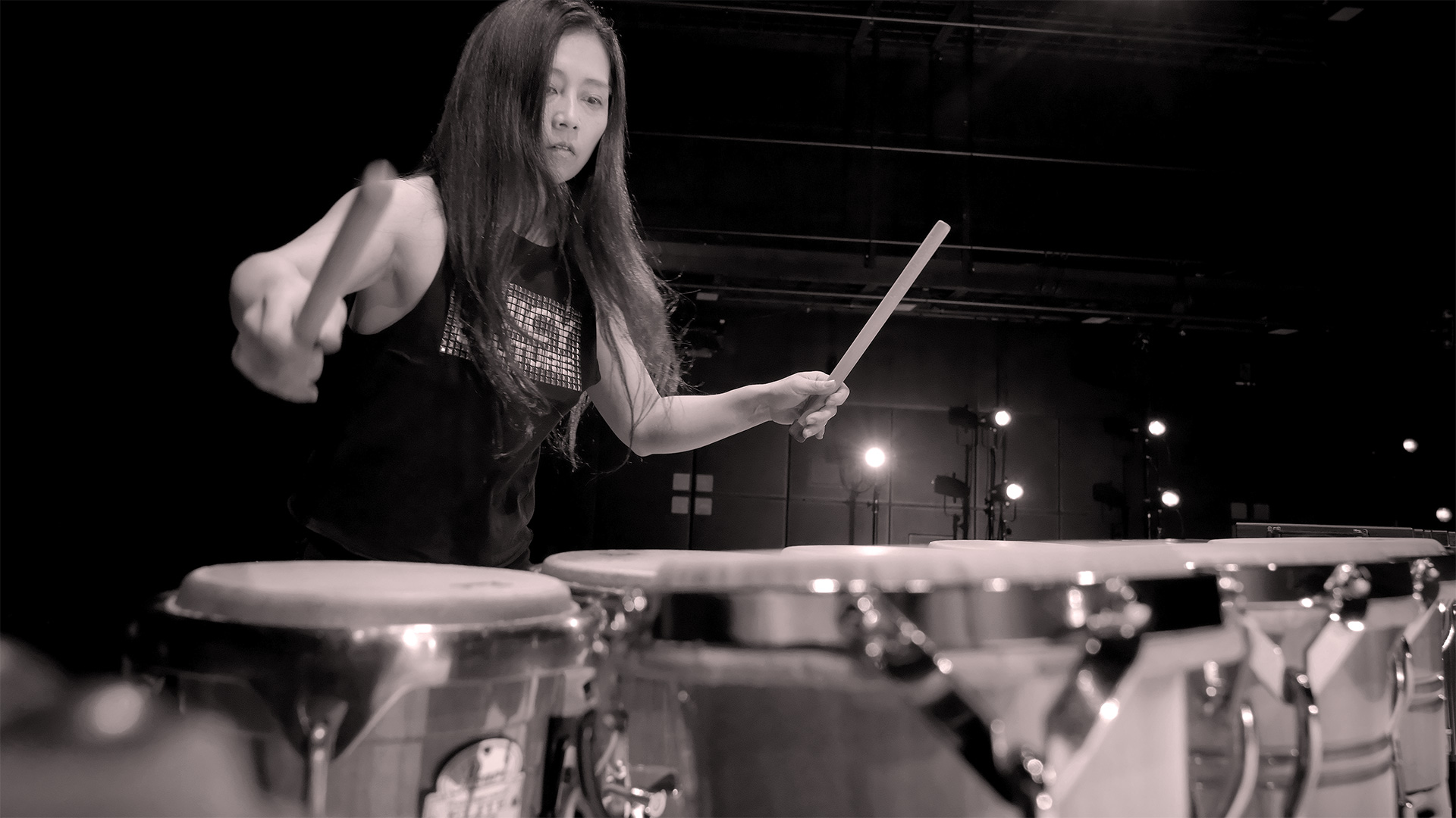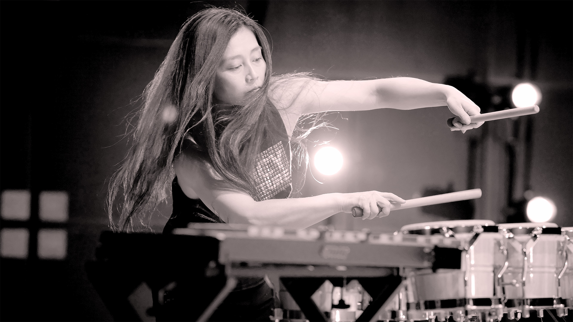 “Drumming” recorded in solo overdub and its live performance version are the world’s first attempt and are officially approved and licensed by the composer (Steve Reich) and the publisher (Boosey & Hawkes). The creation of Drumming and its concert production are provided by NPO ARTS WORKS. Kuniko’s version of Drumming was originally commissioned and produced by Aichi Prefectural Art Theater for the dance title D O P E. (The world premiere – Jan 26-28, 2018) The production is supported world wide by Pearl, ADAMS, Sennheiser, Neumann.Berlin, Synthax | RME, BOSE.