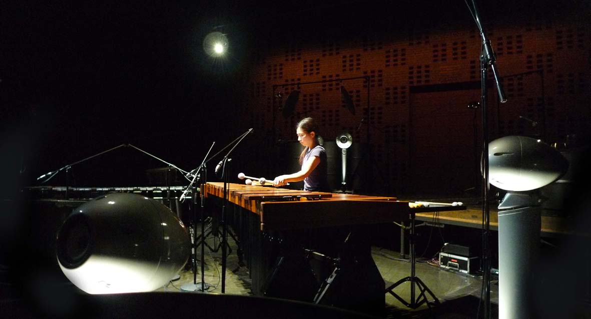 加藤訓子は、5台のドラムペダルを自在に操り、ポリリズムを正確にきざむ「アンビル・コーラス」(デービッド・ラング)からステージがスタートする。スチールドラムのサウンドインスタレーションが続き、ミニマルの大家スティーブライヒの名作「エレクトリック・カウンターポイント」。加藤の手により世界初のパーカッション版編曲で新たなサウンドとして生まれ変わった。楽器は、スティール・パン、ビブラフォン、マリンバにプリレコードされたテープとライブソロという編成。